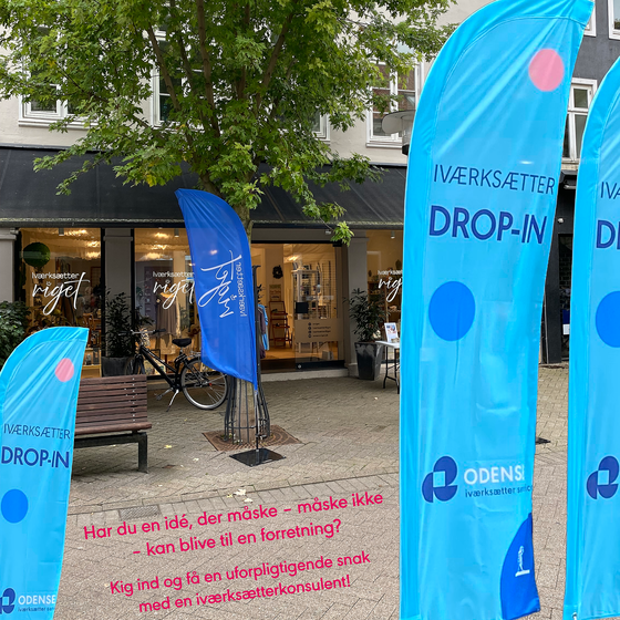 🏁 Beachflagene er oppe – og døren er åben! Når du ser de to beachflag foran IværksætterRiget på Kongensgade 12, er der åbent for iværksættervejledning. Kig ind og få en uforpligtende snak om din idé!